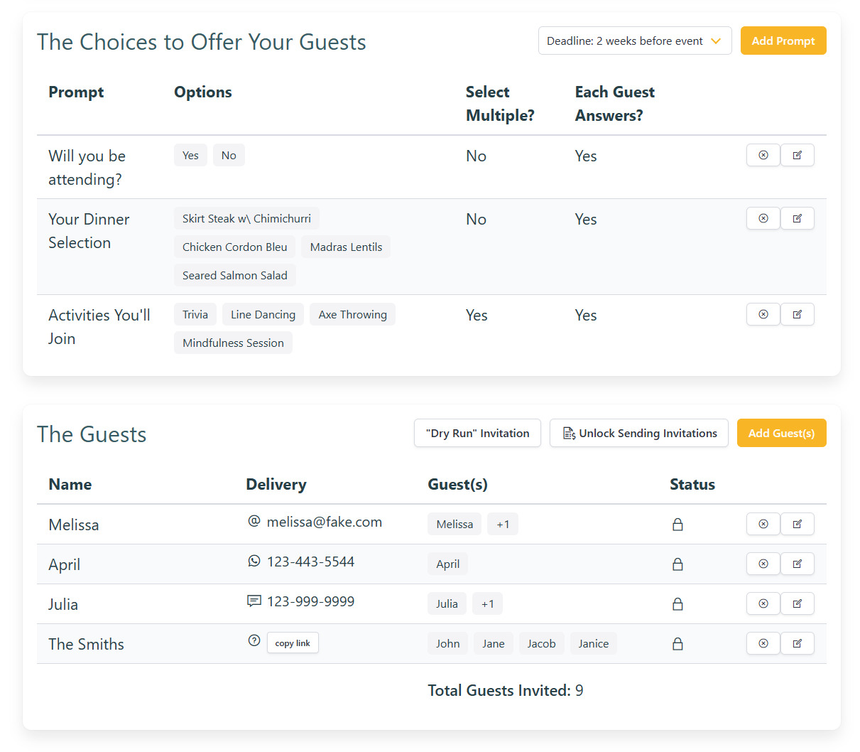 Customize to your exact vision and build your guest list - all for FREE. No obligations until your event is ready to go live.